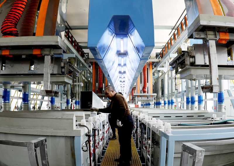 近日,华鼎铜业世界首条全底吹全热态三连炉连续炼铜生产线在稀土高新区全线贯通并正式投入运行。“以前企业生产的阳极板,需要经过三道工序。先将原料放入底吹熔炼炉,底吹产出的冰铜通过包子吊运到转炉吹炼,炼出的粗铜再通过包子吊运到精炼炉精炼。现在,我们只需要一条生产线,将底吹熔炼出的冰铜直接通过流槽流到转炉吹炼,再通过流槽流到精炼炉精炼,精炼出的铜通过脱杂、铸型,便产出合格的阳极铜。”华鼎铜业生产副总王新民介绍,项目的顺利建成,将彻底解决高温粗铜熔体吊包子和固定式反射精炼炉的能耗、环保、安全问题,可为行业提供新的绿色冶炼样板。