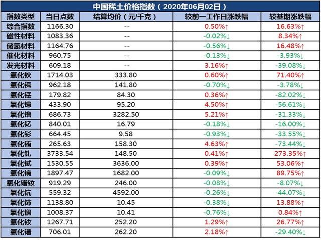 其中,氧化钬、氧化铥、氧化镱、氧化镥、氧化铕、氧化钆、氧化铽、氧化钕、氧化镨单品价格指数分别较前一工作日上涨;氧化铒、氧化钇、氧化钐、氧化镝、氧化镨钕、氧化钪、氧化铈、氧化镧单品价格指数分别较前一工作日下跌。